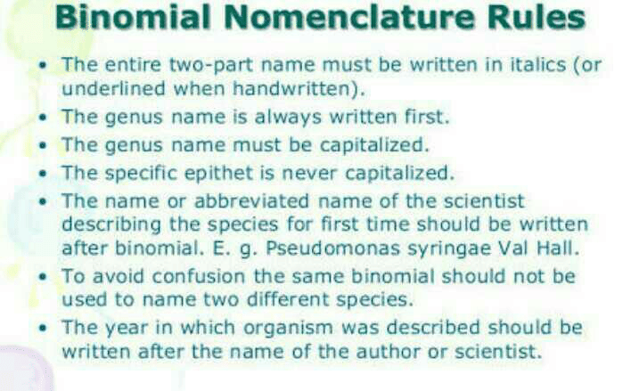 Binomial Nomenclature Rules Of Binomial Nomenclature