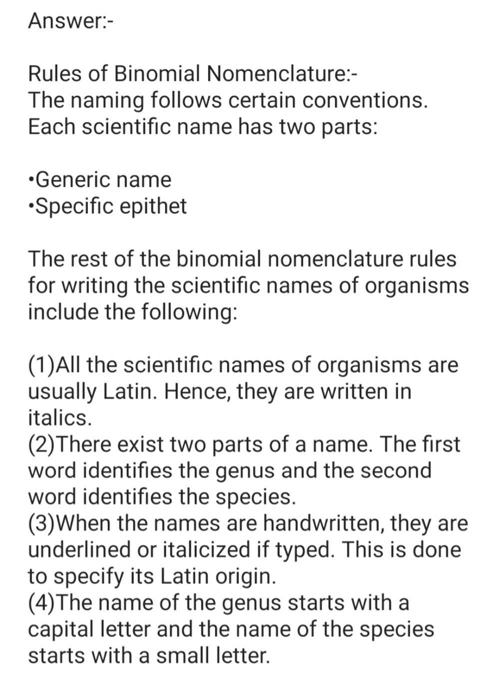20 Explain The Guidclines Rules For Binomial Nomenclature Snapsolve