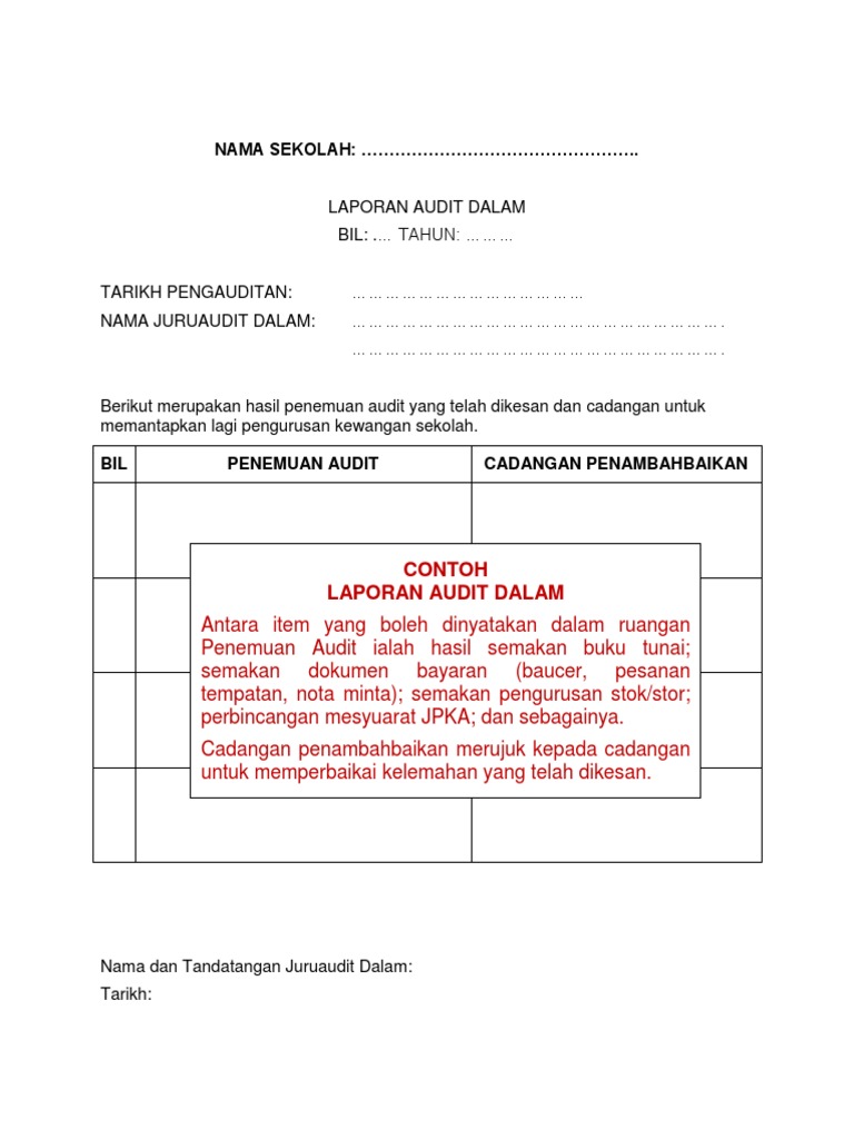 Contoh laporan audit dalaman kewangan sekolah. Contoh Laporan Audit Dalaman Koperasi Sekolah. Laporan audit 38 3.